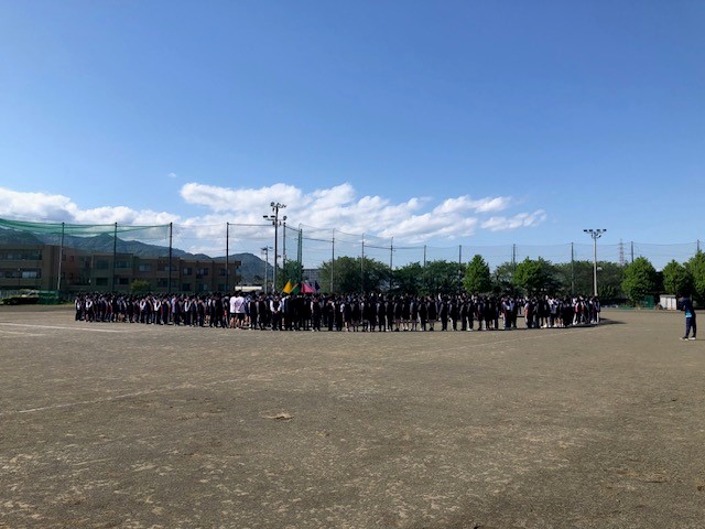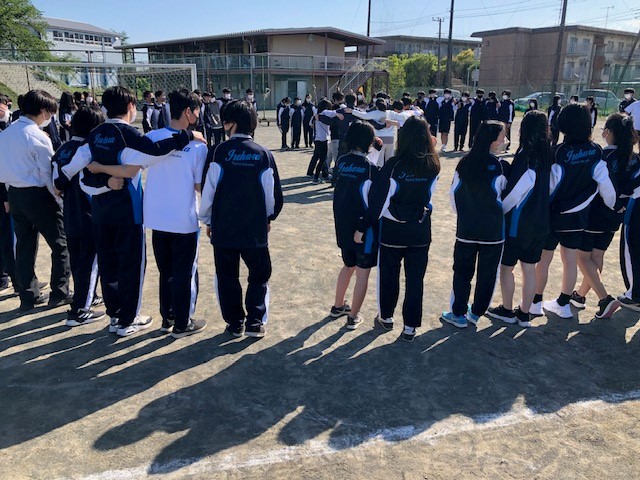 最後には団を越えて全員で大きな円陣を組み、体育祭の成功に向け、生徒全員が1つにまとまりました。