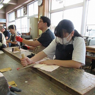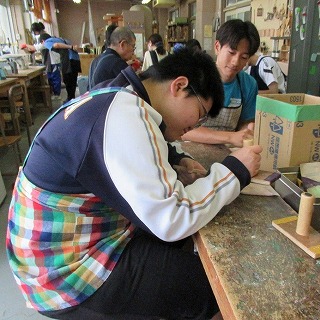 木工班では、自分用の木べらの仕上げ磨きに力が入ります。