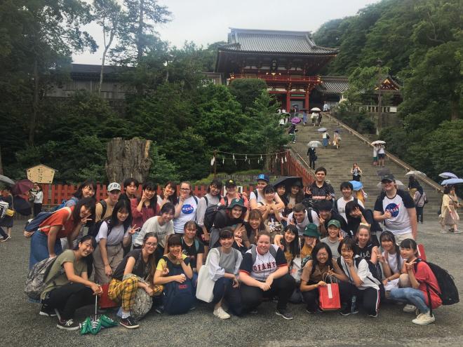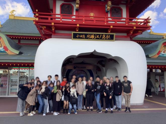 オーストラリア姉妹校一行が来日し、バディの生徒が片瀬江ノ島駅でお出迎えして対面しました。その後、江の島を一緒に散策し、翌日からの鎌倉高校訪問に向けて親交を深めました。