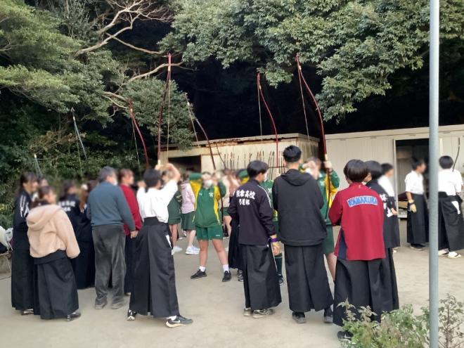 部活動体験最終日は、弓道部の体験でした。屋外の弓道場で弓を引き、日本の伝統武道を経験するとともに、熱帯地域で暮らすオーストラリアの生徒にとっては寒い屋外でスポーツをする経験にもなりました。