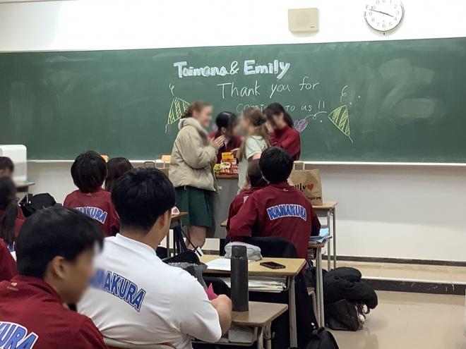 鎌倉高校で過ごす最終日、4校時に日本文化体験講座として折り紙講座を行い、有志生徒による折り紙レクチャーを受けた後、実際に折り紙で作品を作りました。5校時には最後の授業に参加し、帰りのSHRでは別れを惜しみつつクラスでの最後の時間を過ごしました。