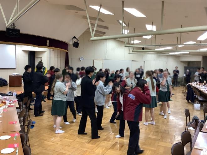 放課後にはFarewell Partyを開き、バディ生徒や国際交流委員、クラスメイト、部活動生徒など、これまで関わった多くの生徒が集まりました。軽食を食べながら歓談が弾む中、オーストラリアの生徒たちがダンスを披露してくれ、鎌倉高校の生徒もダンスを教わりながら加わり、一緒に楽しみました。