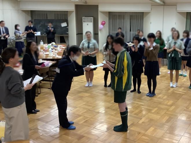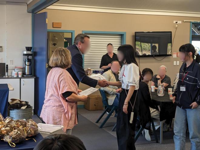 その後Farewel Partyを開いて頂き、校長先生から修了証と記念品を頂戴しました。お世話になったホストファミリーとバディとともに、フィッシュ&チップスやニュージーランド伝統菓子パブロバを食べながら、楽しいひとときを過ごしました。鎌倉高校の生徒もソーラン節とを披露し、感謝のスピーチを行いました。