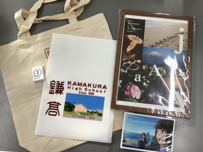最後に校長から姉妹校交流プログラム修了書と、美術部作製のポストカード、写真同好会作製のコラージュ作品、鎌倉高校グッズの記念品を贈呈しました。今回の交流の経験を、今後に生かしていってもらいたいと思います。