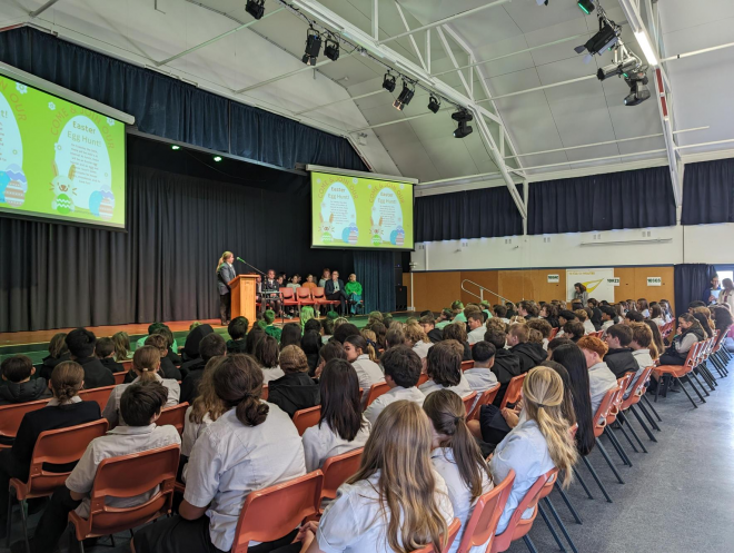 5校時に体育館で交流会を実施し、オーストラリア生徒によるセント・アンソニーズ・カソリック・カレッジについての発表や、両校に関するクイズ大会で盛り上がり、交流を深めました。