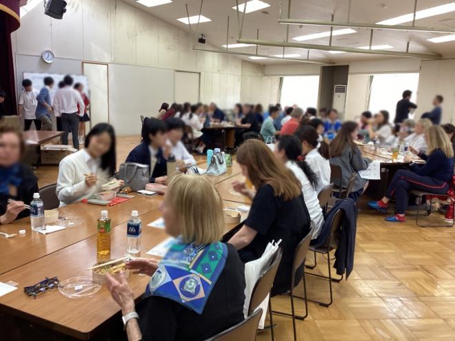 昼からはバディの生徒とともに授業に参加し教え合ったり、ホストファミリーが作ってくれたお弁当を食べて談笑したりしながら、交流を深めました。