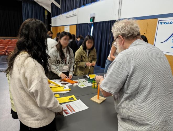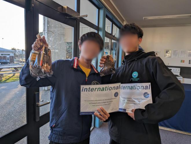 午前中はパラパラウムカレッジにて、英語で理数の授業を受けるサイエンスイマージョンを体験しました。キーウィやニュージーランド近海の巨大イカについての講義を受けた後、バディに教わりながらエアーロケット作りに挑戦しました。
