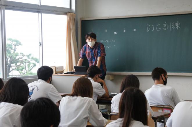 8月23日(月)朝のホームルーム後に、地震発生を想定した防災訓練とDIG訓練を実施しました。
