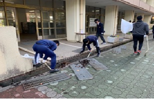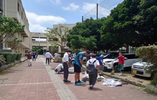 校舎周りの清掃を行いました。蒸し暑い中でしたが、力仕事なども協力し合って敷地内を