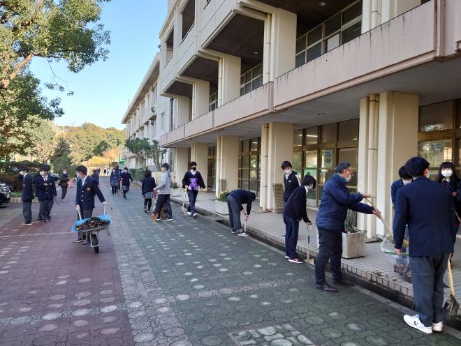 ・PTA環境委員8名、生徒127名が参加し、放課後の時間を使って校舎周りの清掃を行いました。
