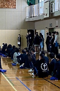 PTA会長から釜利谷高校入学のお祝いと、PTA活動の説明をさせていただきました。