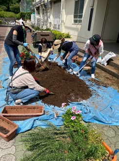 ・6月7日に環境委員会が、花壇の土入れ替えをしてくれました。