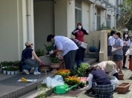ン、アロマボール、スクイーズの販売を実施。広報委員は写真撮影、環境委員はお花の植え替え