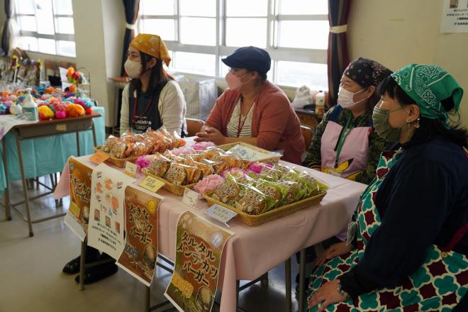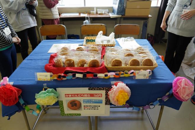 PTA販売ブースで、本部はかまりんどら焼き、成人委員はバーガー、学年委員はアロマストー