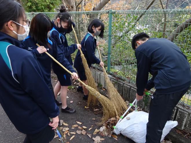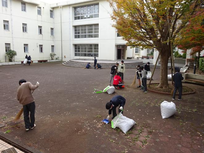 校内は緑が豊かな分、落ち葉に覆われた箇所を掃いたり、掻いたりする作業は大変なもので