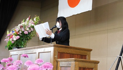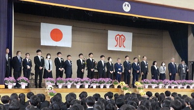 結びに、これから、新入生の皆さんが、鶴高生として自信と誇りを持ち、一人ひとりの夢の実現に向けて新しい自分を創造していくことができることを期待し、式辞といたします。