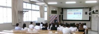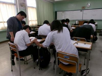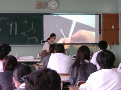 本日は、学校を会場にした中学生とその保護者を対象として学校説明会を行いました。体育館の耐震工事のため、校長あいさつなどはオンライン会議システムを使って16会場に一斉配信し、学校概要の説明は16会場で担当教員が説明を行いました。体験授業では中学生が大変熱心に取り組んでいました。