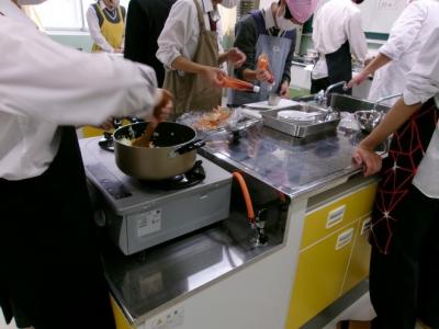 本校は4単位の家庭総合を2学年で2単位、3学年で2単位設置しています。今回は3年生の調理実習の授業を観ました。チームで分担し、手際よくミネストローネを作っていました。食べるのも手際よく、観ているこちらはお腹が空きました。