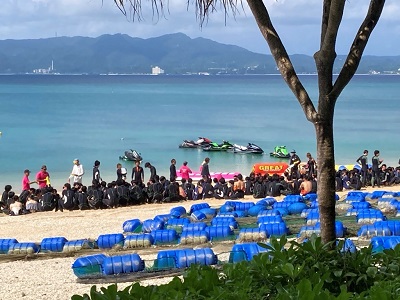 修学旅行3日目、お世話になった民泊の皆さんとお別れをし、美ら海水族館と体験学習を行ったという報告がありました。幸い天候にも恵まれ、暑いようです。2学年の保護者の皆様あてには、団長の副校長から「まちコミ」で随時状況を発信しています。明日は国際通りでお買い物をして羽田に向かいます。