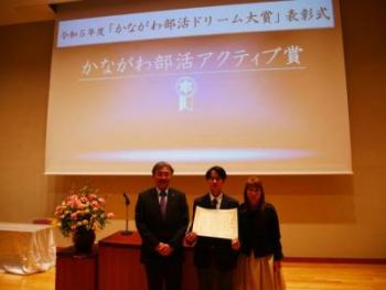 本校からは、インターアクトクラブが、国際貢献を軸に活動の幅を広げ、ザンビアへの体育館シューズを送るプロジェクトなどに取り組んだ成果などが評価され、「かながわ部活アクティブ賞」を受賞しました。