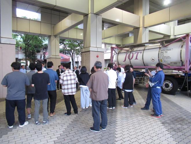 7月16日(水)に、3学年対象に物流出前授業、全学年対象に交通安全講話を実施しました。物流出前授業では、神奈川県トラック協会さまのご協力により、大型トラックに乗車体験をすることができました。また、交通安全講話では神奈川県警察署より講師が来校し、交通安全についてのお話をしていただきました。生徒たちも物流業界を身近に感じ、また、交通安全に対しあらためて考える機会となりました。