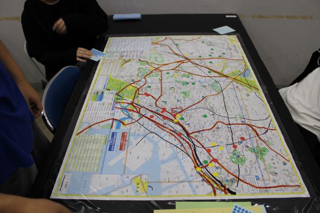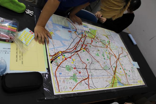 7月10日(木)に1学年を対象としたDIG訓練(図上災害訓練)を実施しました。4つのグループに分かれ、学校周辺の地図をもとに災害を想定した防災学習を行いました。また、新聞紙を利用した簡易スリッパの作成体験も実施しました。生徒たちは積極的に参加をしていました。
