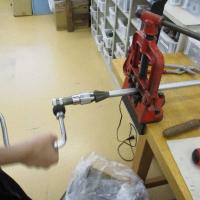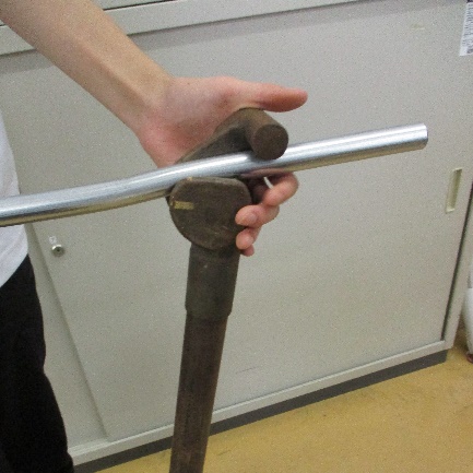 | 図面と壁を想定した板に部材配置 | 金属管末端加工作業 | 金属管S曲げ手加工作業 |