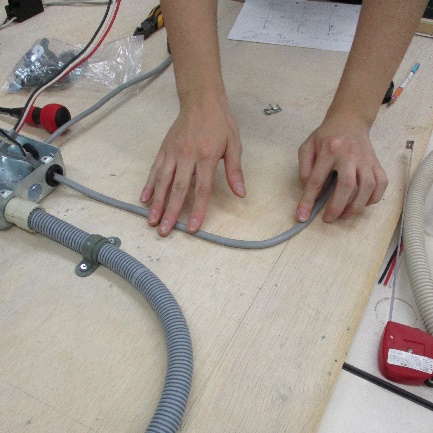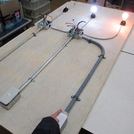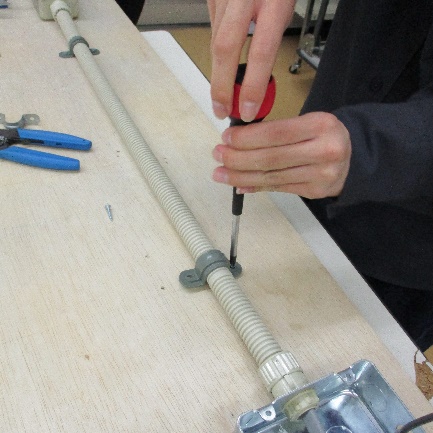| PF管サドル固定作業 | VVFケーブル曲げ固定作業 | 完成回路試験作業 |