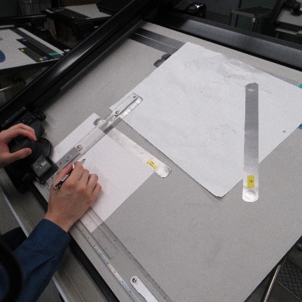 ■手描き図面作成ものづくりでは、図面を手で描くことで構造や寸法の理解を深め、ものづくりの基本と作業工程を研究します。