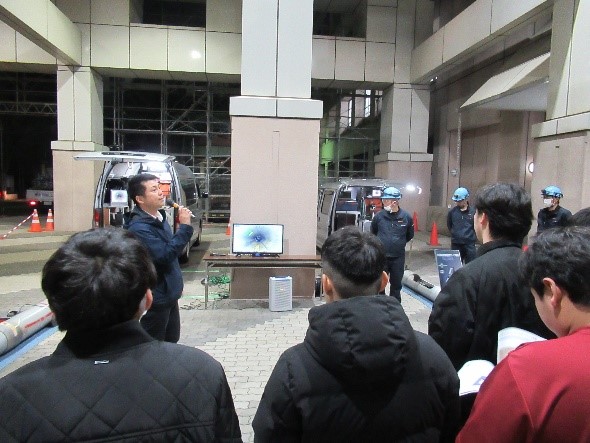 3月13日(木)に、第2回定時制3.0 DXスクールコンソーシアム出前授業が行われました。今回の出前授業は1・2年生対象で、狭い下水道管内の異常を検査する「ラジコン型のロボットカメラ」を操縦する体験をさせていただきました。