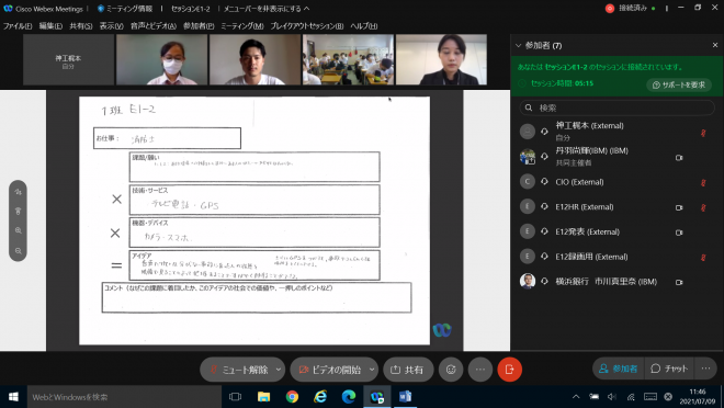 ワークショップ(課題) 「IT技術によって新たな製品、サービスを開発し、仕事の効率化やコスト削減などを実現するシステムを提案する。~あったら「嬉しい」、使って「便利」なシステムを考え出す~【企画】 内容 各自が課題を考え、6~7名の班で話し合い、一番良い企画を発表して、企業の方からコメントをいただく、ワークショップを行いました。
