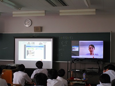 当日の様子:すでに「AI」という言葉を知っている人がほとんどでした。しかし、どのような分野で活用されるか、「AI」にも種類があることなど深く知らず、新しい学びがたくさんありました。現在、「AI」が注目されている理由や未来予想の動画を見せてもらい、今後の未来が楽しみになりました。どの分野においても「AI」が関わってくることを知り、幅の広さ、奥の深さを感じました。次回は、生徒たちの「発想力」を発揮する「企画」を考えます。