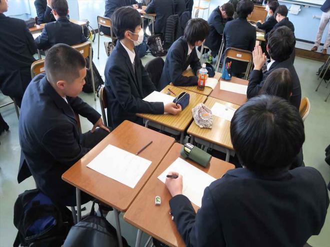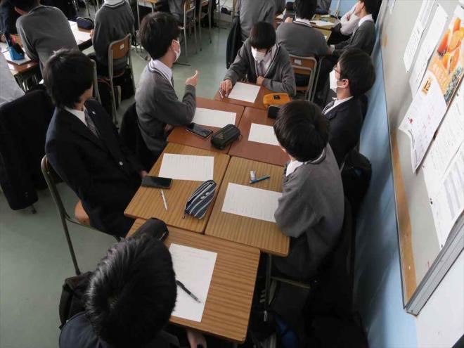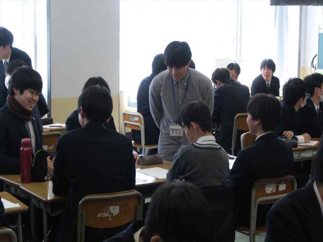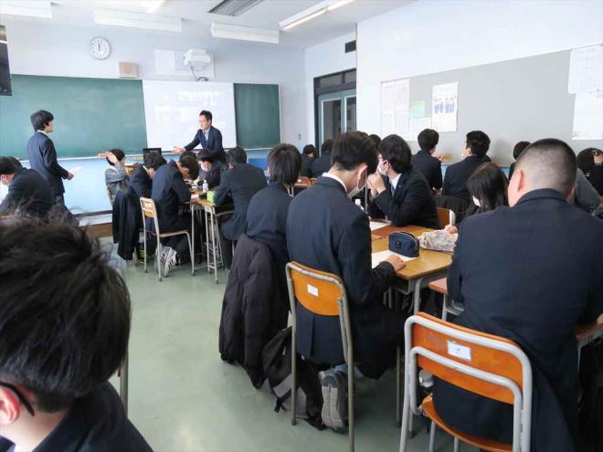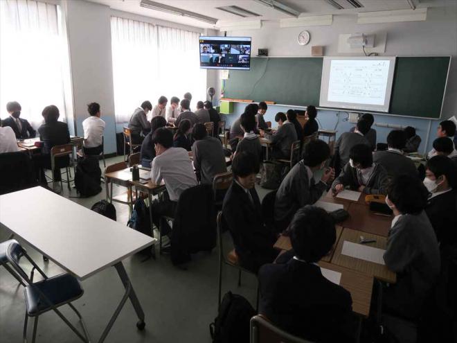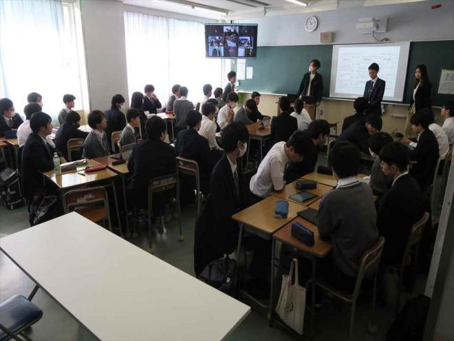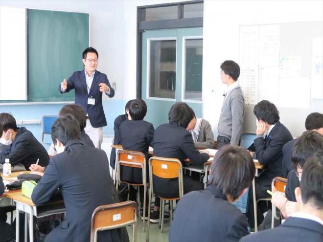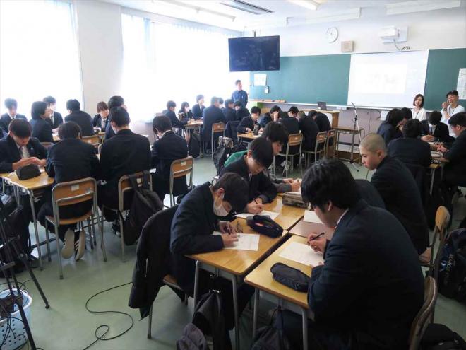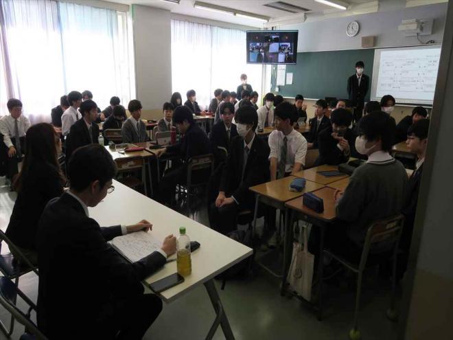 各HR教室にて電気科1年生114名が受講 各班の発表に対して、メンターの方からコメントをいただく。 |