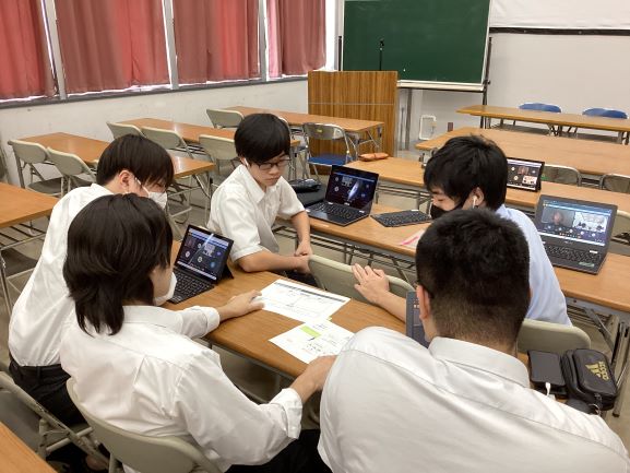 当日の様子:6名程度の班に1名メンターが入りオンラインでメンタリングを行いました。まずは、お互いの自己紹介から始まり、自分たちが考えた企画の内容やその経緯、理由などをお話しました。その中で、メンターから質問や生徒の考え、視野が広がるようなアドバイスをいただき、企画内容を詰めていくことができました。また、お話の中で考えが行き詰まる班もありましたがメンターからいろいろなヒントをいただき議論を重ねることができました。