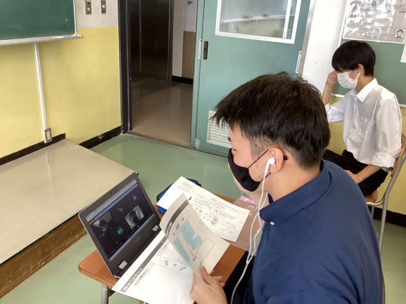 当日の様子:2回目のため、さっそく生徒たちから、課題解決の方法について説明し、困りごとや質問、方向性の確認を行いました。また、自分たちの言葉で伝えたことが、正しく理解してもらえるか、伝え方の難しさを感じながらディスカッションをしていました。そして、様々な角度から物事を見る、情報収集の重要性、など多くの気づきをいただきました。