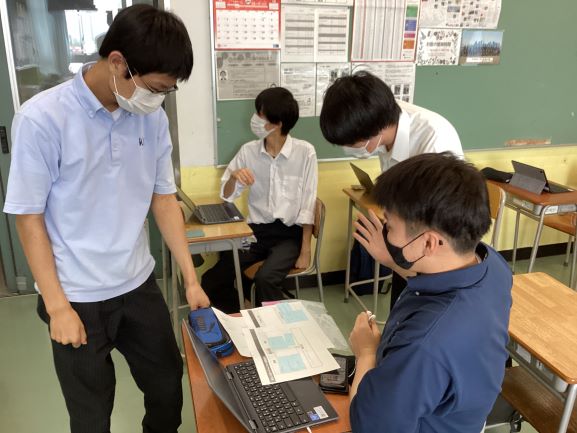 概要:現在、2学年電子情報系選択生徒を対象にSoftbank「AIチャレンジ」の教材を活用し、「AIを活用できる人材」の育成を目的に進めております。第3回P-TECH事業では、前回提案した企画をもとに具体的にどのようなAIをどの部分で活用して解決を目指すのかについて、企業メンター1名が各グループに入りメンタリングを行いました。