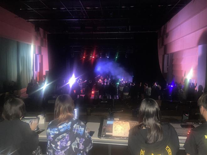 音響や照明などの舞台技術を学び、文化祭や軽音ライブなどのイベントにおいて、舞台の裏方としてサポートしています。部員数も多いですが、3年次を中心に皆が団結して日々の活動に取り組んでいます。