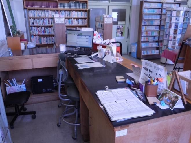 図書委員がカウンター当番を行なっています。 文化祭では「古本市(リサイクル本)」をやっています。 |