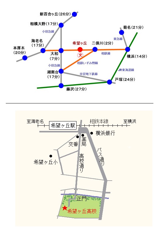 神奈川県立希望ケ丘高等学校 〒241-0824 神奈川県横浜市旭区南希望が丘79-1 TEL045-391-0061(代表) TEL045-361-5880(定時制職員室) Fax045-361-9789