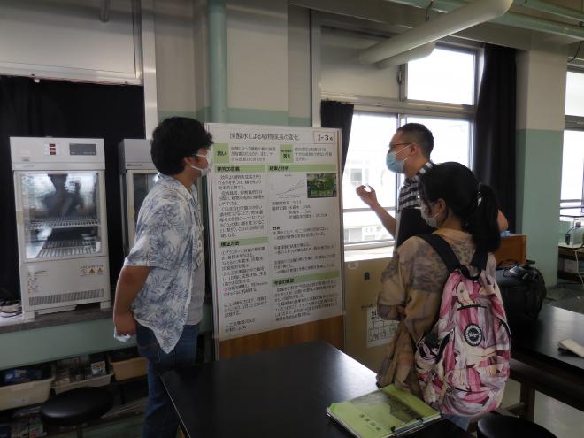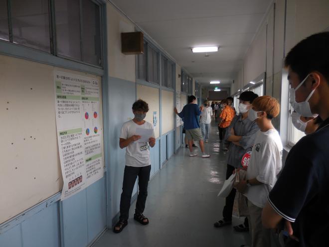 本校SSH運営指導委員の先生方、神奈川県教育委員会の方々、他校から来校された先生方、ティーチングアシスタントの大学院生の方々、本校教職員、そしておよそ700名の1・2年生は時間制で入れ替わりながら参加し、質疑応答が活発に行われました。