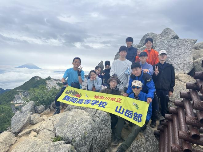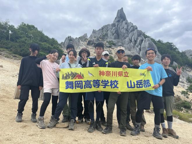 平日はランニングや筋力トレーニングを行い、週末に月1・2回程度の山行と高山への宿泊山行を行っています。コロナ禍が明けた2023年夏には小屋泊での夏合宿を実施しました。2024年度はテント泊での合宿を3回(6月・7月・9月)行いました。「山が好き!」「登山を通して充実した高校生活を送りたい」など、熱い思いを持った生徒の入部を待っています。