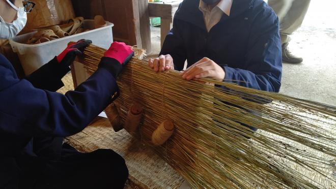 ①こも編み ②竹切 ③組み立て の3日間に分けて作業を行いました。