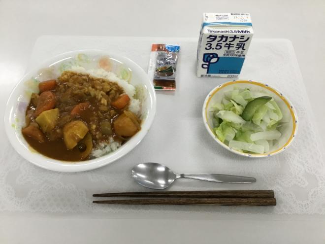 冬野菜カレーライス 牛乳 大根とほたてのサラダ |