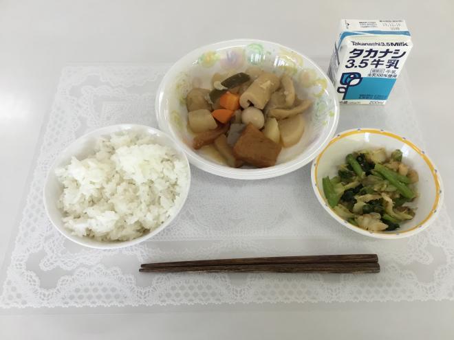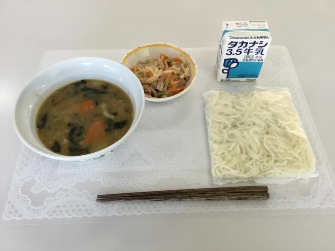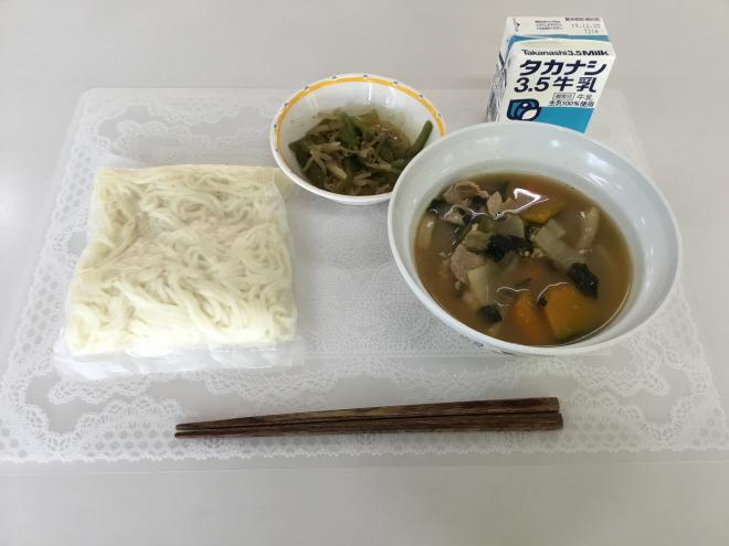 肉みそうどん 牛乳 ハムと切り干し大根のごま酢あえ |