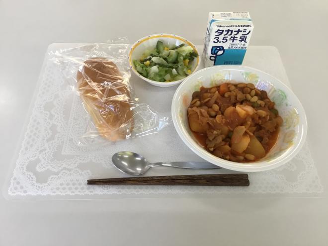 黒パン 牛乳 ポークビーンズ グリーンサラダ |