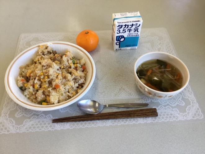 チャーハン 牛乳 豆腐と青梗菜のスープ |