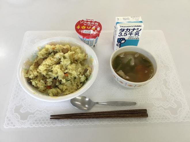 カレーピラフ 牛乳 かぶとベーコンのスープ ヨーグルト |