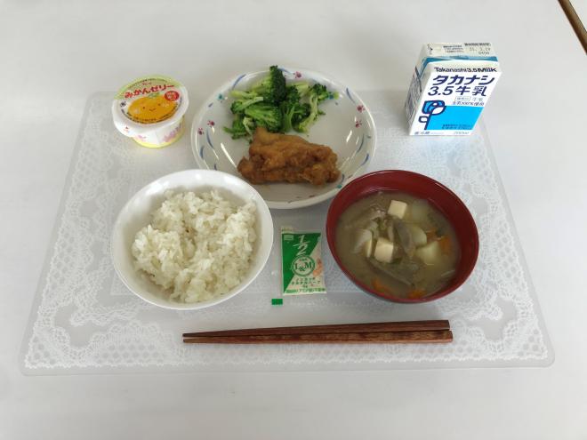 <高Bリクエスト&卒業お祝いメニュー> ごはん 牛乳 チキン南蛮 ゆでブロッコリー 豚汁 みかんゼリー |