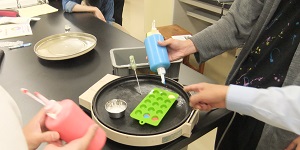 プラスチックの作製や、リサイクルの手法について実験を行いました。