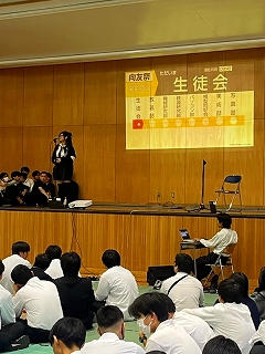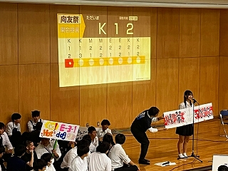令和6年度向友祭-文化祭-が10月25日(金曜日)に始まりオープニングセレモニーが体育館にて行われました。改修が完了したピカピカの体育館にて全発表団体が一言アピールを行いました。